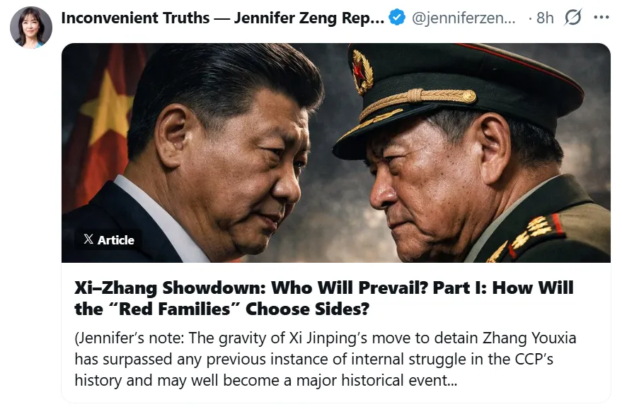 Selbst als Vizevorsitzender der Zentralen Militärkommission hatte Zhang Youxia niemals die Befugnis, Truppen zu mobilisieren – insbesondere nicht die Eliteeinheit CGB (Central Guard Bureau), deren Hauptaufgabe der Schutz der obersten Führung Chinas ist – ohne ausdrückliche Anordnung der zivilen Spitze.