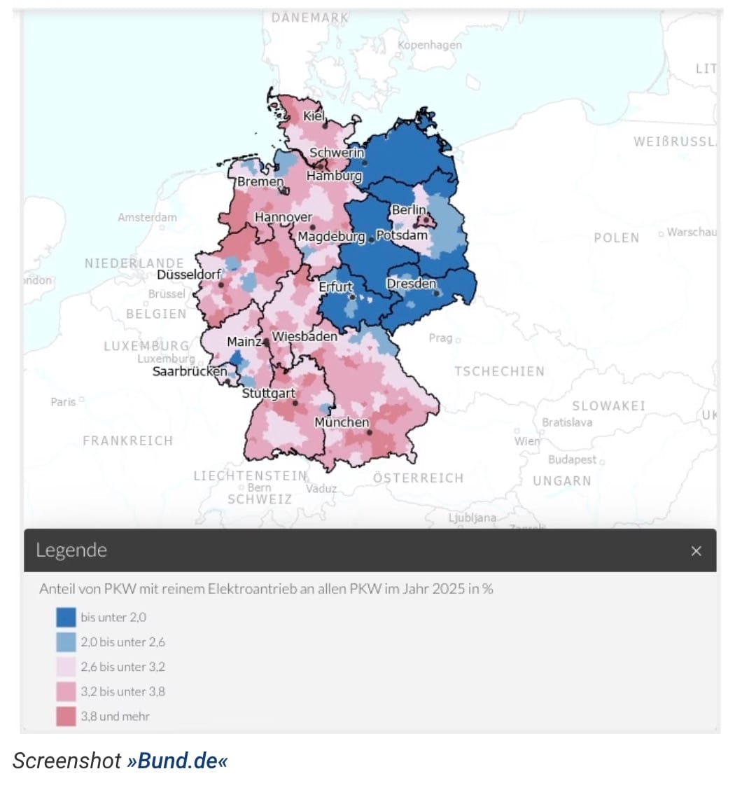 Dabei liegt der Anteil reiner Fahrzeuge mit Elektroantrieb im Durchschnitt bei unter 3,5 Prozent; selbst mit Hybriden verbessert sich das Bild kaum. »Hersteller wie Porsche leiden unter Einbrüchen«, und drohende Stellenstreichungen betreffen ein Viertel der Belegschaft in Deutschland. (Screenshot im Anhang)