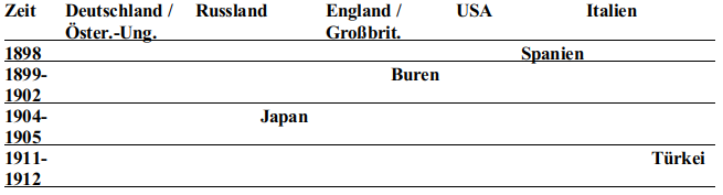 Hier eine Übersicht der Länder, gegen die zwischen 1872 und 1914 Krieg geführt wurde (ohne Niederschlagung von Aufständen in den Kolonialgebieten)